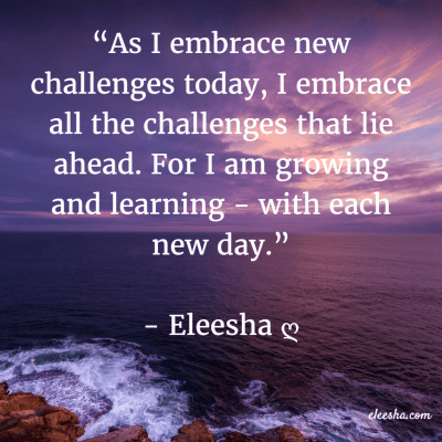 “As I embrace new challenges today, I embrace all the challenges that lie ahead. For I am growing and learning – with each new day.” ~ Eleesha ღ Life’s challenges, whether good or bad will always