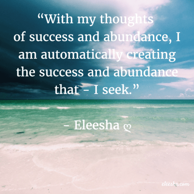 “With my thoughts of success and abundance, I am automatically creating the success and abundance that – I seek.” ~ Eleesha ღ Having good thoughts about your success and abundance is essential if you wish to